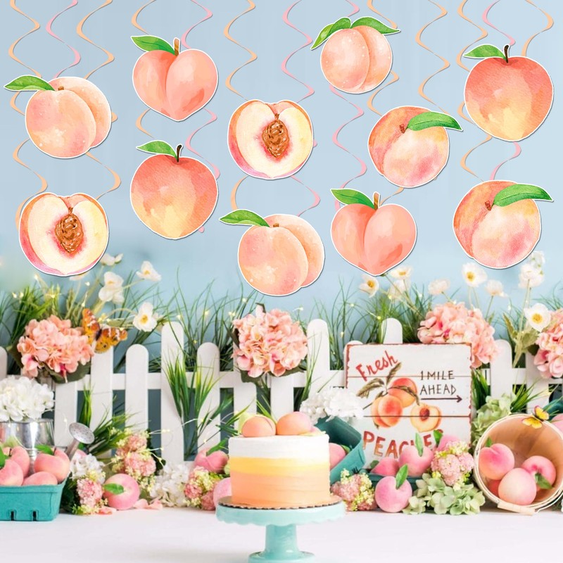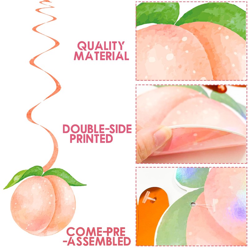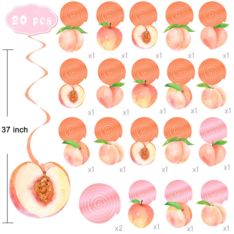 - Package includes: Set of 20 peach-themed hanging swirl decorations featuring double-sided printed designs with beautiful peach motifs. Charming and fascinating