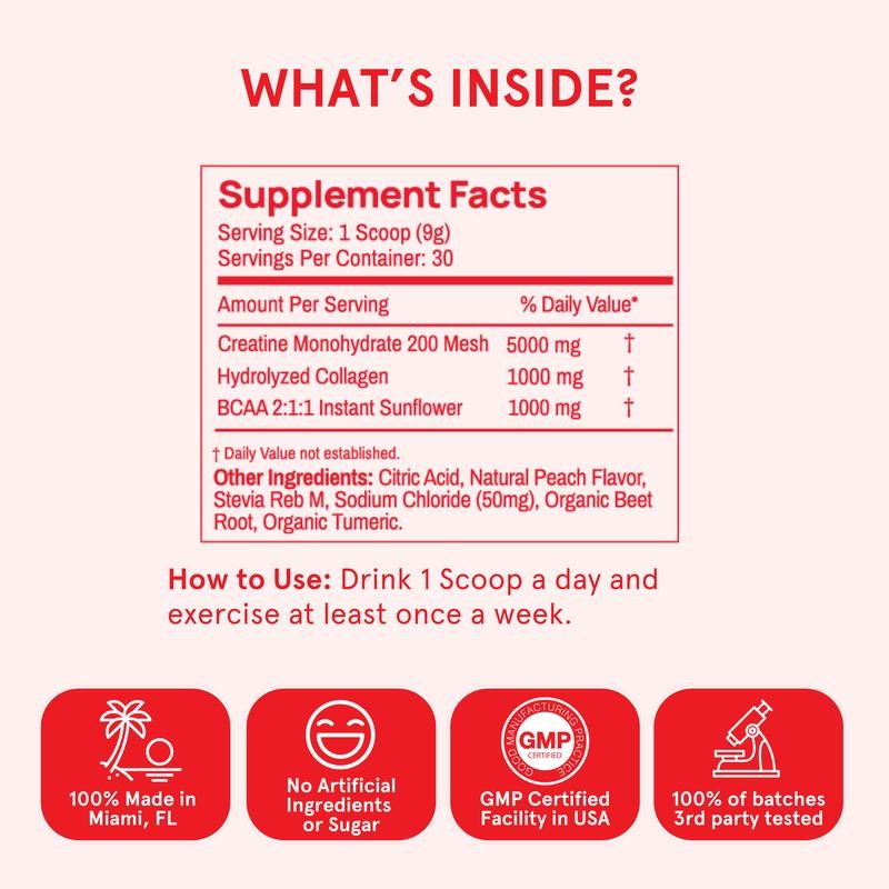 • Peach Perfect Creatine Monohydrate Powder, Creatine for Women with Collagen, BCAAs, 5g Vegan Micronized Creatine per Serving, for Energy, Performance, 30 Servings Supplement Muscle