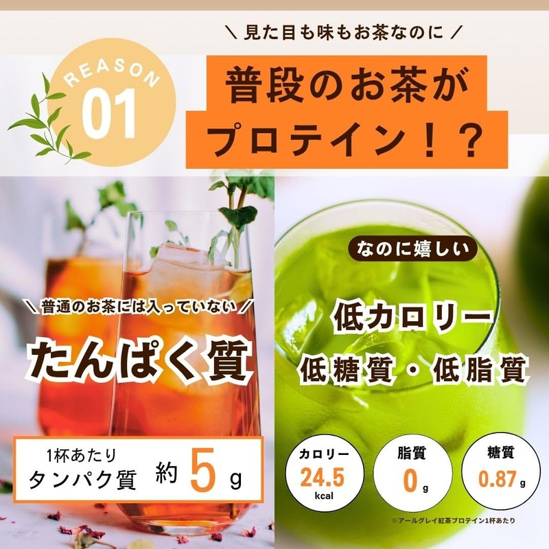 • 甘くない!無糖ティープロテイン96g [15回分] 選べる7味!アールグレイティ紅茶・玄米茶・黒烏龍茶・ジャスミンティー・緑茶・ほうじ茶・無糖レモンティー