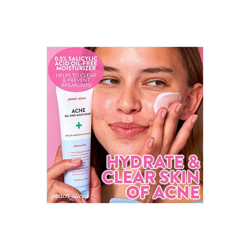 Peach Slices | Acne Oil-Free Moisturizer | Satin Matte Finish | 0.5% Salicylic Acid | Hyaluronic Acid | Prevents Breakouts | Pore Minimizing | Clear Skin | Silicone Free | Face Moisturizer | 2.8 oz