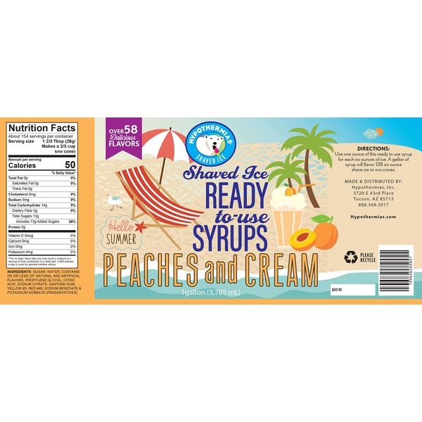 Peaches and Cream Snow Cone Syrup & Hawaiian 🍧 Flavor Syrups 🌺 coffee, icee slushie, soda stream, flavored syrups for drinks 🍹 100% Pure Cane Sugar, NO CORN SYRUP 🚫 🌽 Ready To Use Gallon (128 Fl Oz)