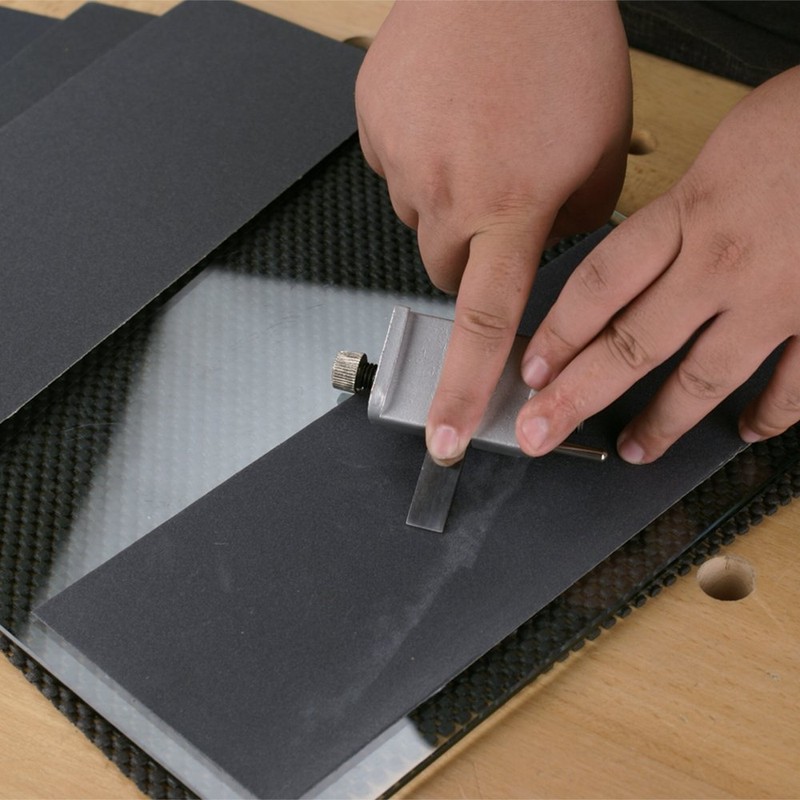 - Use the Course Glass Plate Sharpening System for removing nick and gouges