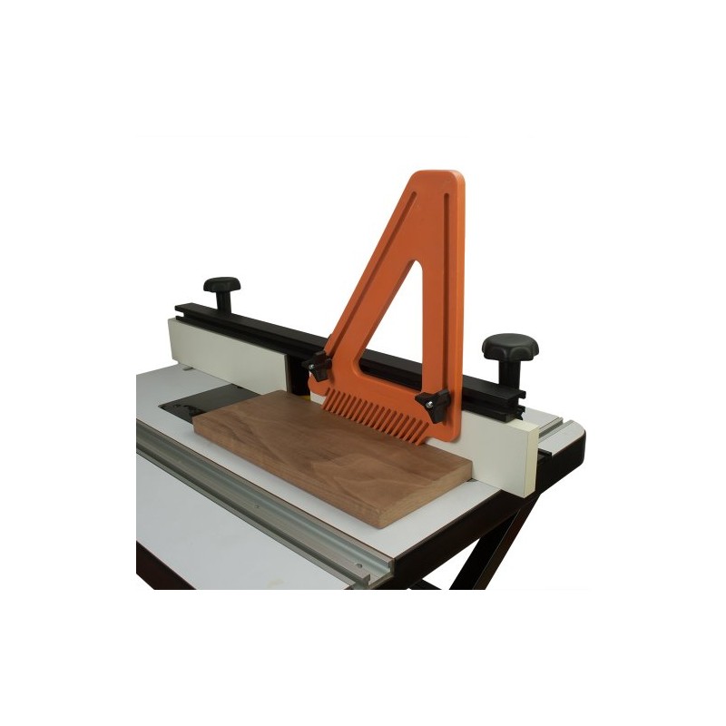 A key component for any safety conscious woodworker, featherboards apply adjustable pressure to your stock and allow your wood to slide through the blade or bit, at the same time - have reverse angle teeth that will keep the stock from kicking back.