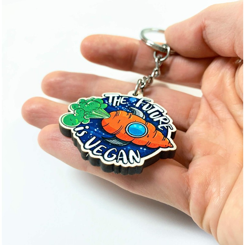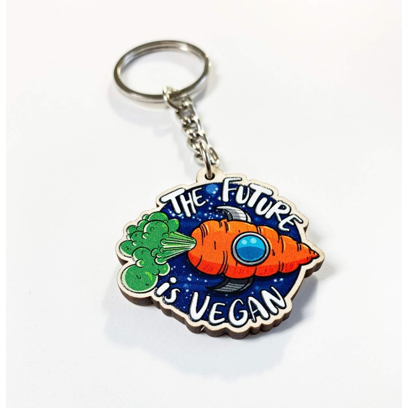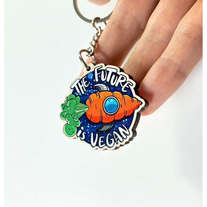 PeachyApricot The Future Is Vegan Wooden Keychain