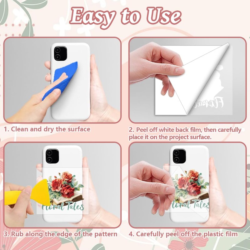 What sets us apart? Unlike competitors using thick paper backing, our Rub on decals feature a super-thin film for seamless application on curved surfaces. The included transfer tool makes it easy to achieve professional results without bubbles or smudging. Plus, the versatile designs work on ceramics, glass, wood, and metal—ideal for weddings, birthdays, or everyday crafting.