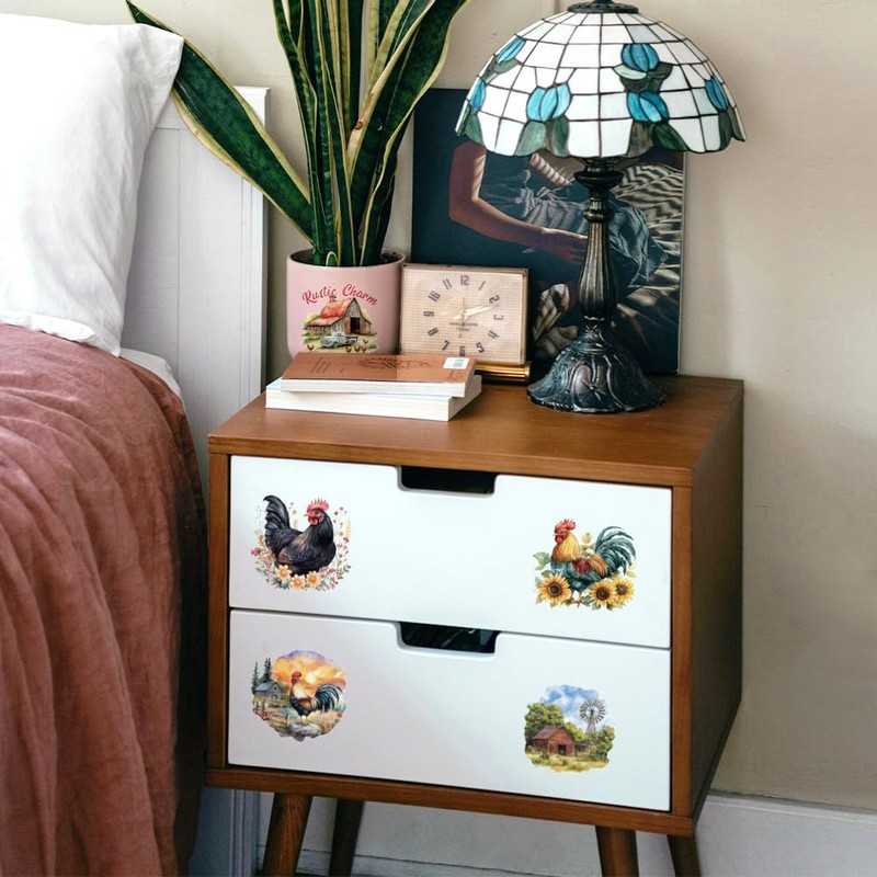 - 🖼️ 18 Sheets of Diverse Designs: Discover 18 sheets of Farm chicken themed rub on transfer stickers, featuring unique patterns of farm chickens, eggs, farmhouses, warehouses, trucks, fences, sunflowers, wildflowers and more. Customize projects for any occasion, adding charm to your creations.