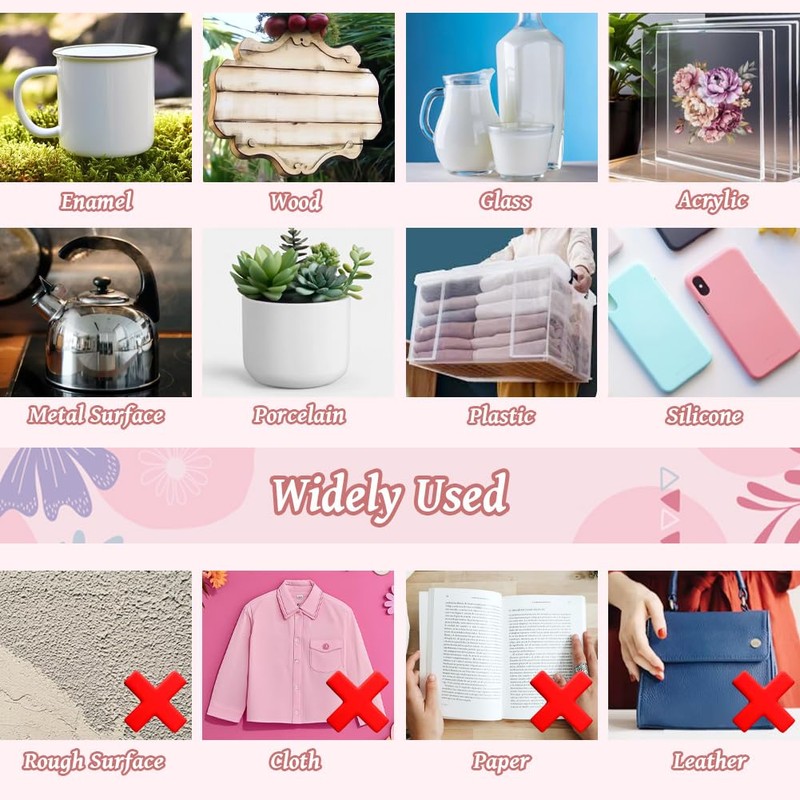 What sets us apart? Unlike competitors using thick paper backing, our Rub on decals feature a super-thin film for seamless application on curved surfaces. The included transfer tool makes it easy to achieve professional results without bubbles or smudging. Plus, the versatile designs work on ceramics, glass, wood, and metal—ideal for weddings, birthdays, or everyday crafting.