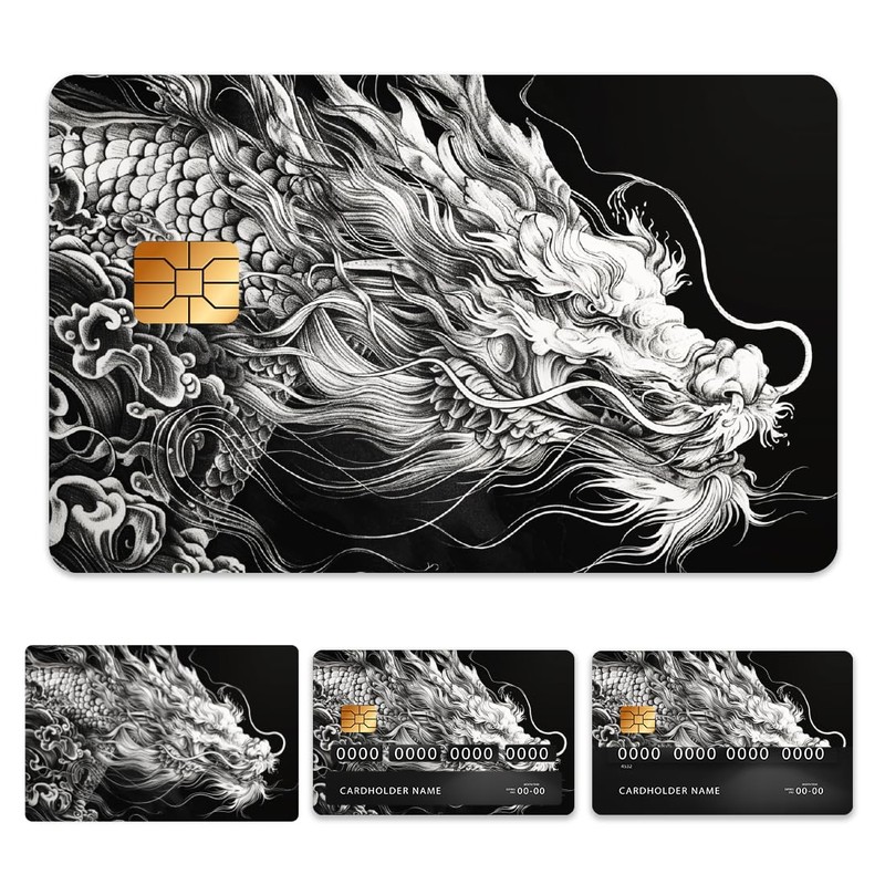 Peacoblue Bank Card Sticker Black and White Dragon Credit Debit Card Custom Skin Cover Protector, 4 Styles Scratch-Proof and Attractive Decal for Most Popular EBT Transportation Key Card
