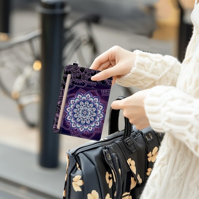 peacoblue Credit Card Holder Slim Wallet, Lotus Pattern RFID Wallet Women Front Pocket Small Card Holder Travel Cute Funny Thin Card Case ID Window PU Leather RFID Blocking Card Organizer Gifts