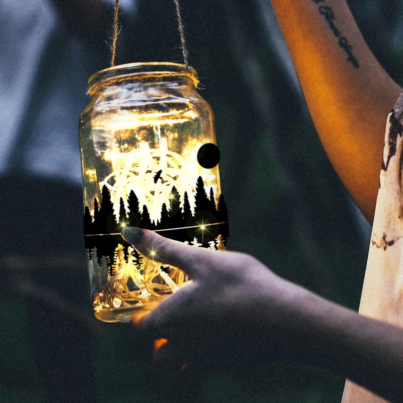 - 🎆Widely Used: These forest silhouette suitable for jars, mason can, glass bottles, wishing bottle, wedding anniversary birthday festivals outdoor party decor, window, camping lamp silhouettes, walls, night lamps, crystal ball posters and cards