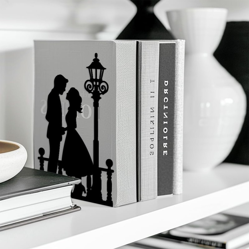- 📚︎Eye-catching Design: Featuring a stunning men and women under streetlight pattern and solid quality, these bookends let you store more books on floating shelves or in tight spaces—while adding a refined touch.
