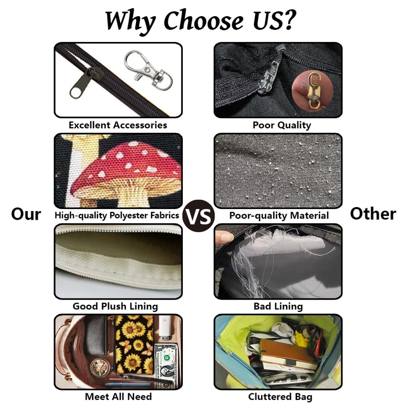 Tired of messy pockets? Our high quality canvas coin bag combines waterproof durability, clever organization and chic design in 6 exclusive patterns to suit every taste: dragonfly & wisteria, tribal style, butterflies & sunflowers, mushroom & starry sky, elephant & flowers and cat & flowers.