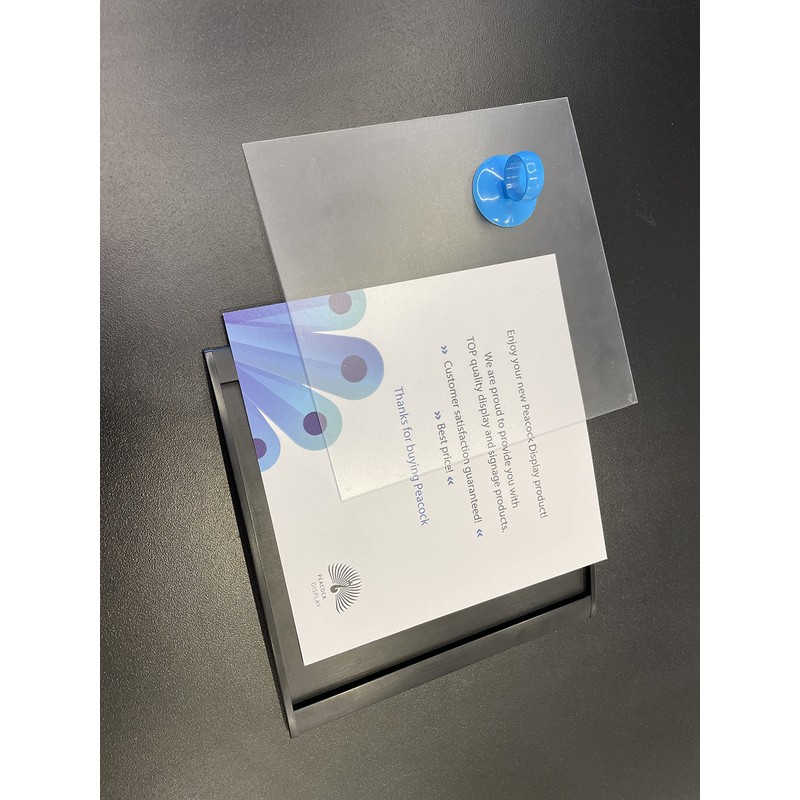 - This product is designed so you can create your own paper/card stock inserts, many sizes are available to suit your signage needs, just search for peacock display signs and you'll get all the sizes you need. 100% green product and made from quality materials.