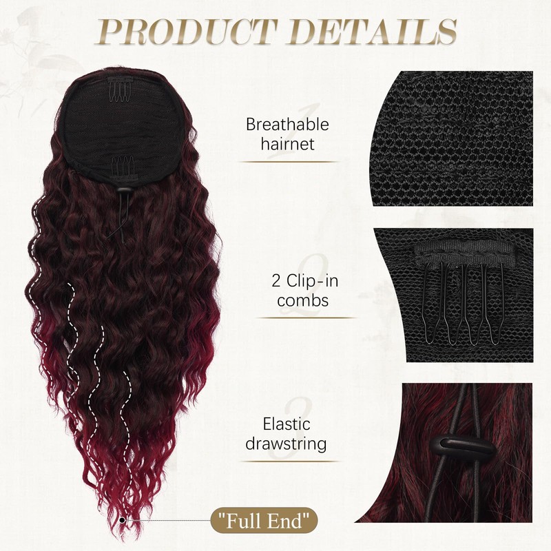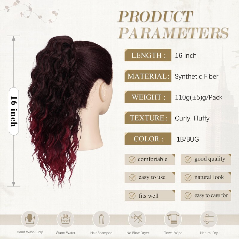 - [Warm Tips]- Wrap around drawstring pony tail hair extension is meticulously crafted with care. The curls are well-defined. It is unnecessary to worry about tangles because they can be easily untangled by spraying water or mousse and then separating them with your fingers (It is not recommended to use a comb but your fingers).