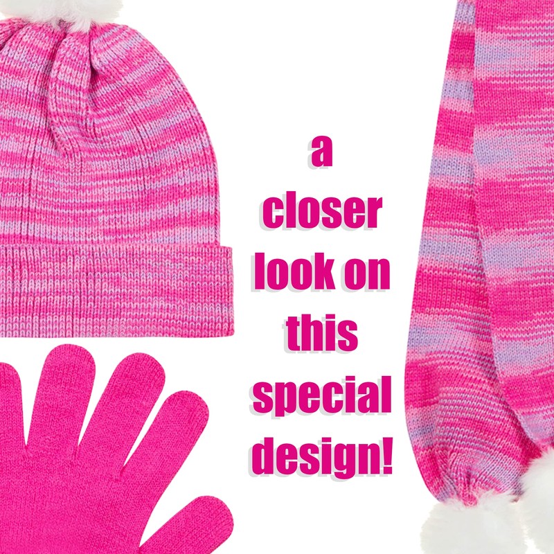 PEAK 2 PEAK Girls 3 Piece Beanie Hat Scarf and Glove Matching Set [4015] (Pink Glittered)