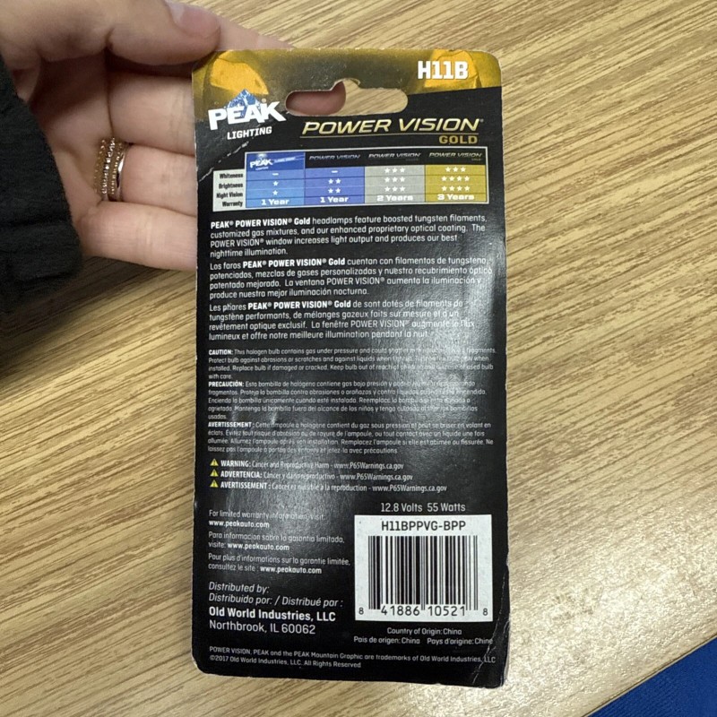 PEAK Power Vision Gold Automotive H11B 55W Headlight 1-pack