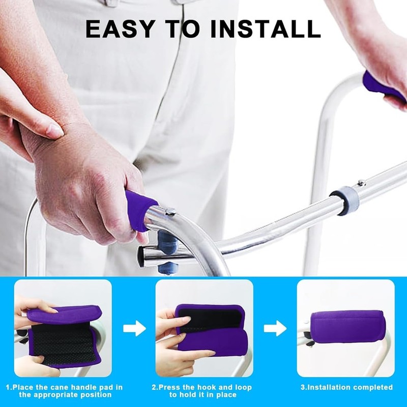 - [Easy to Install and Clean] Our crutch handle pad grips are designed with a hook and loop closure for easy installation or removal, and the size can be adjusted as needed for optimal use. The walker handles are washable and reusable, but machine washing is not recommended.