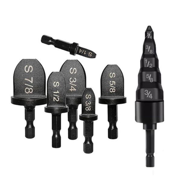 Peakloong 7Pcs Black Steel Manual Copper Pipe Swaging Tool Drill Bit 6Pcs Pipe Expander Drill Bit 5 in 1 Air Conditioner Copper Pipe Expander