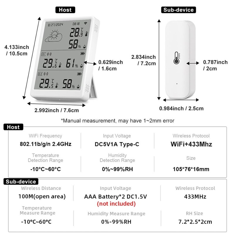 - Comprehensive monitoring: Accurately track temperature and humidity with the Tuya WiFi Temperature Sensor. This smart thermometer and hygrometer kit includes 1 display and multiple 433MHz sensors to accurate, real-time environmental data
