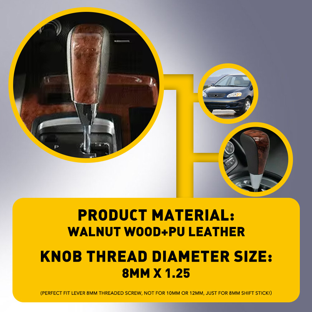 Walnut Wood Leather Gear Shifter Stick Knob Handle For Toyota Lexus Scion Black