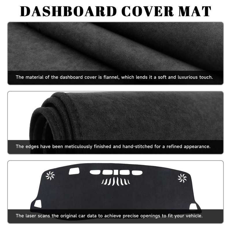 - The black dashboard cover is made of flannel material that helps reduce dangerous windshield glare, keeping the interior cool in the summer and warmer in the winter.