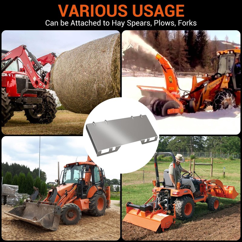 - MULTI-TOOL ADAPTABLE: With the mount plate, you can add customised accessories. Its slide-out construction makes it easier to attach pallet forks, ploughs, grabs and other components. If you want to make quick work of harvesting and cleaning, snow removal and other tasks on your farm, you can use our mounting plate to help you. It will bring you a wonderful working experience and good mood.