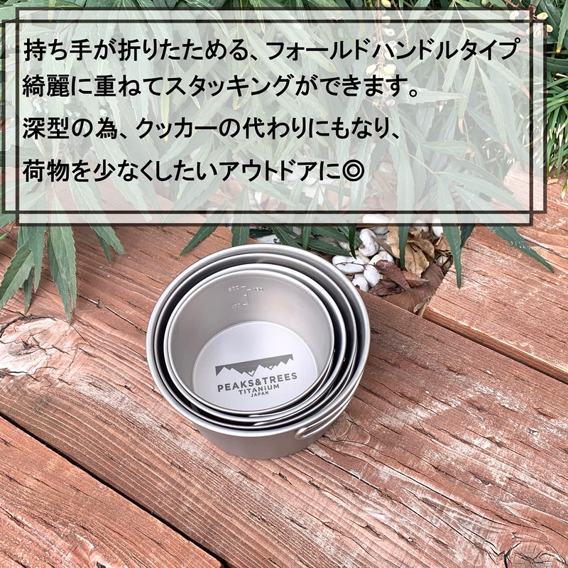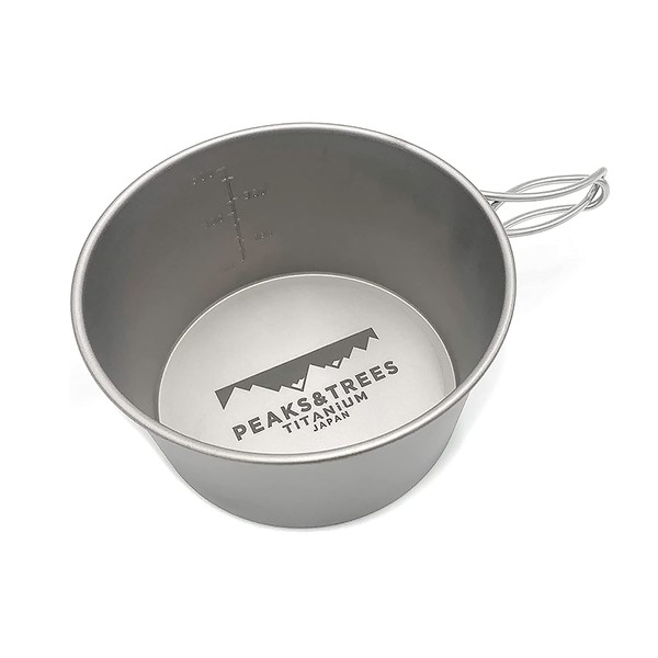 PEAKS & TREES Titanium Shera Cup, Open Flame, Deep, 20.3 fl oz (600 ml), Tsubamesanjo, Made in Japan, Foldable, Foldable, Graduated, For Outdoor Activities, Camping, Cooker, Large, Cookware, Handle, Dishes, Pots, Solo Can