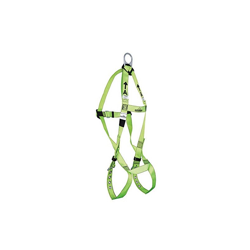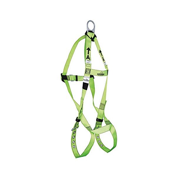 PeakWorks Compliance Series Roofing Fall Protection Full Body Safety Harness, 3 Point System with Fall Indicator, Back D-Ring, Class A - Fall Arrest, Hi Vis Green, Universal Fit, V8001200