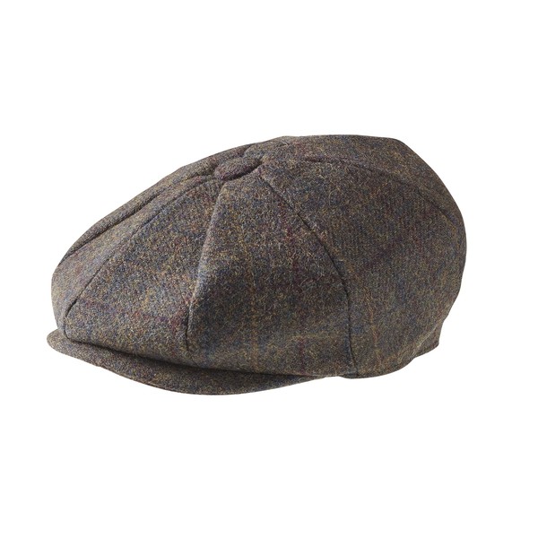 Peaky Blinders 'Newsboy' Style Flat Cap -Tweed Wool (X Large ( 61cm), Brown Mountain Check)