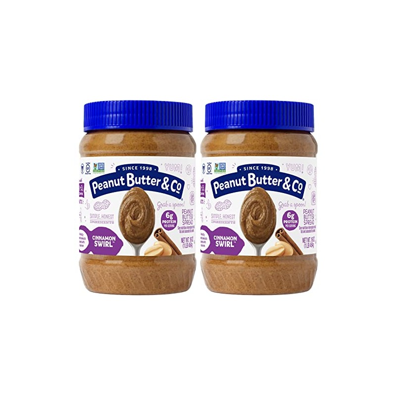 Peanut Butter & Co. Cinnamon Swirl Peanut Butter, Non-GMO, Gluten Free, Vegan, 16 Ounce (Pack of 2)