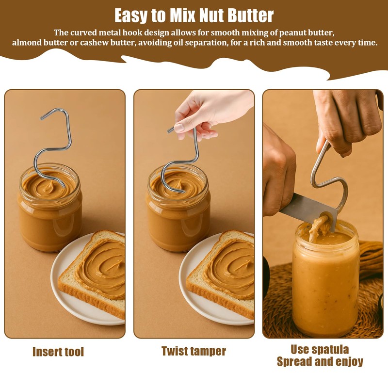- Easy to Mix Nut Butter: The curved metal hook design allows for smooth mixing of peanut butter, almond butter or cashew butter, avoiding oil separation, for a rich and smooth taste every time.