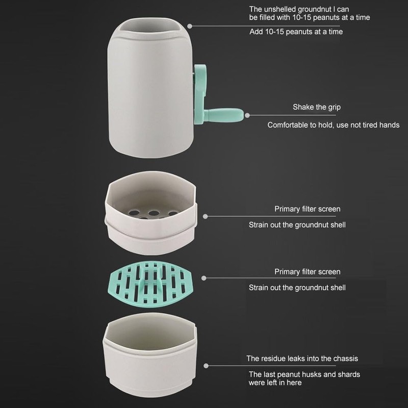 - 【Efficient Dual Layer Filter System】: Enjoy clean snacking with our innovative dual-layer filter mechanism. This clever design quickly separates shells from kernels and delivers perfectly peeled peanuts and pistachios without the hassle of cleaning. Optimise your snack preparation and enjoy every bite without effort.