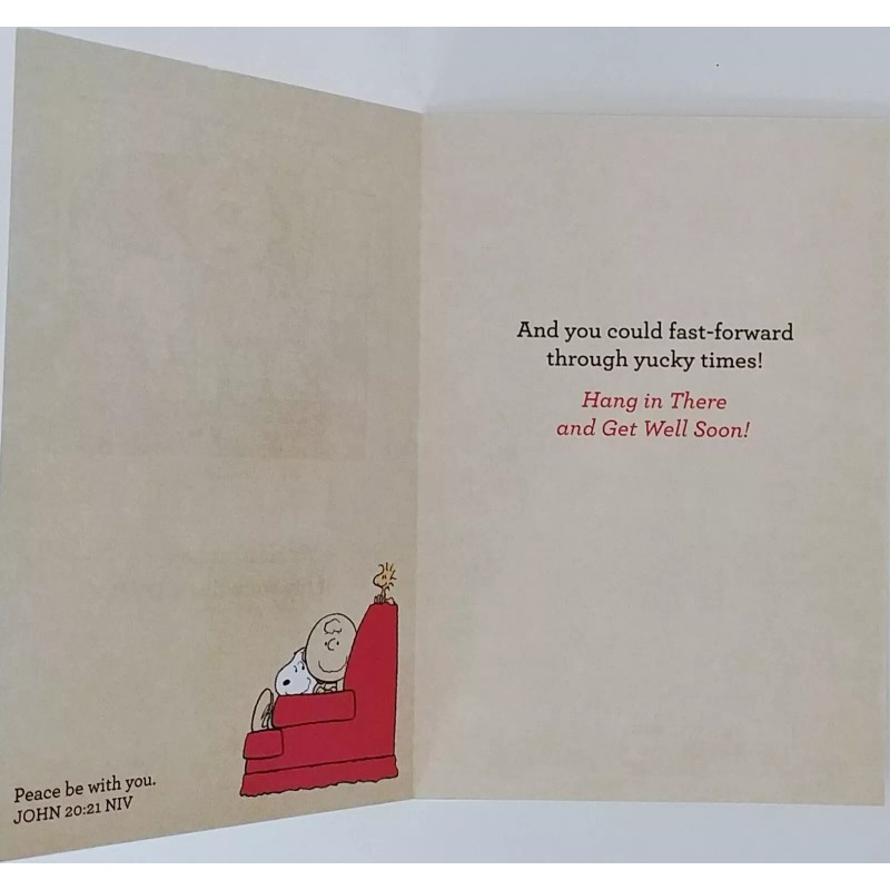 Peanuts Charlie Brown Snoopy GET WELL SOON Religious Greeting Card Hang in There