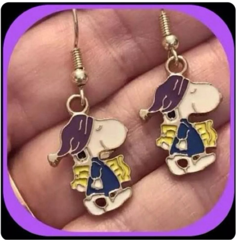 Absolutely Adorable Scrooge Snoopy Bedtime Nightcap Pajamas/Blanket Enamel Earrings