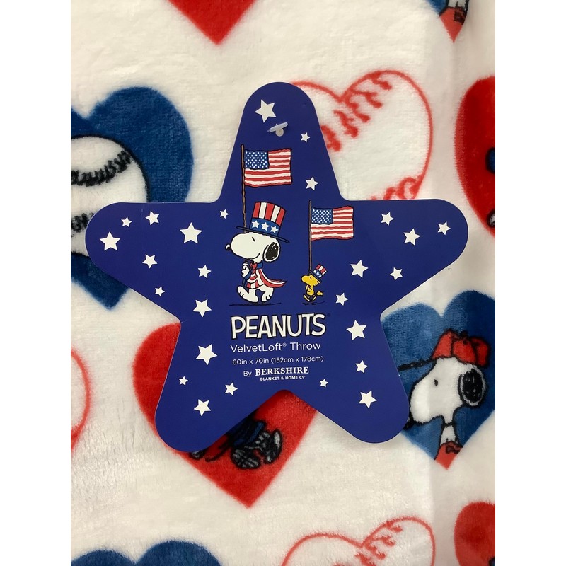 Wrap yourself in the charm of America's favorite beagle with this delightful VelvetLoft throw blanket from Berkshire. This cozy 60" x 70" throw features an adorable pattern of red, white, and blue hearts filled with baseball-themed Peanuts characters and motifs. The design includes playful scenes of beloved Peanuts characters in various baseball poses, along with classic baseball elements set against a crisp white background. Made from 100% polyester, this super soft and snuggly throw provides the perfect combination of warmth and whimsy. The generous size makes it ideal for curling up on the couch, adding a decorative touch to your bedroom, or bringing along to baseball games. The patriotic color scheme and beloved characters make this throw a wonderful addition to any Peanuts fan's collection. The VelvetLoft material ensures lasting comfort and durability, making this blanket perfect for year-round use.