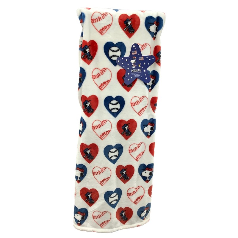 Peanuts VelvetLoft Baseball Hearts Throw Blanket, 60 x 70 inches, Red White Blue