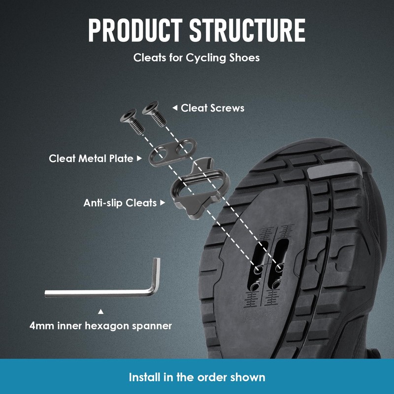 - 【 Anti slip screw design 】Comes with anti slip fixing screws, the spd cleats for cycling shoes is installed more firmly, even in harsh weather or complex road conditions, it is not easy to loosen, ensuring cycling safety