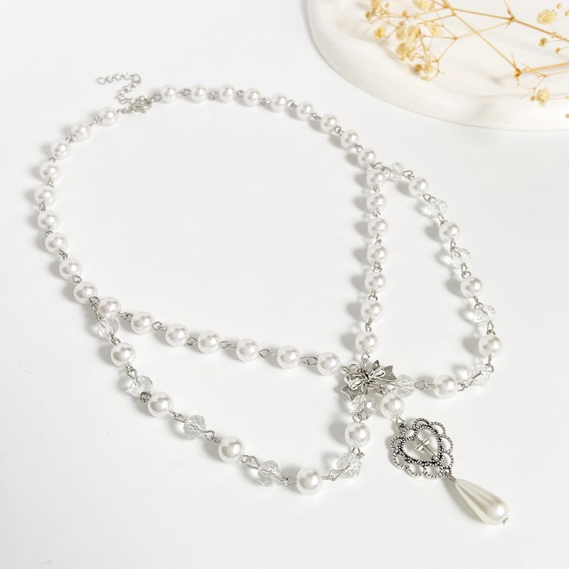 - Pearl Cross Necklace: Pearl cross necklace is very delicate and lovely. This necklace comes in a wide selection of types, including a pearl cross pendant necklace and a small cross necklace with love pearls. The design is simple, fashionable and delicate, perfect for your various outfits.