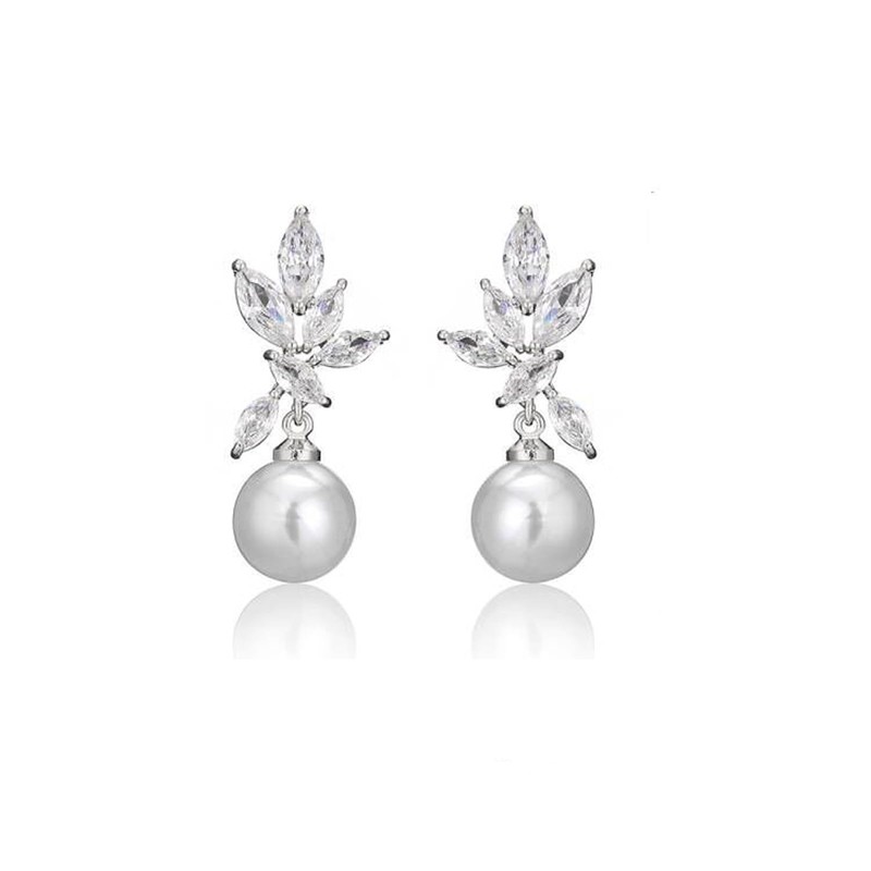 Pearl Drop Earrings for Women Silver Plated Bridal Pearls Cubic Zirconia Dangle Earrings for Wedding Jewelry