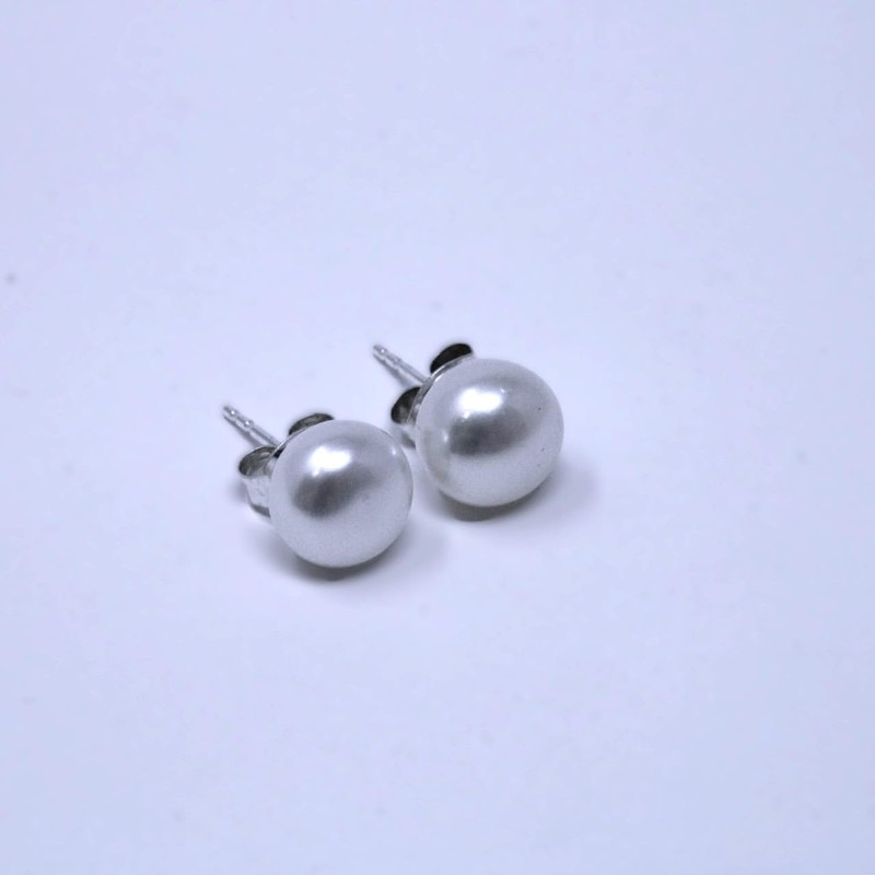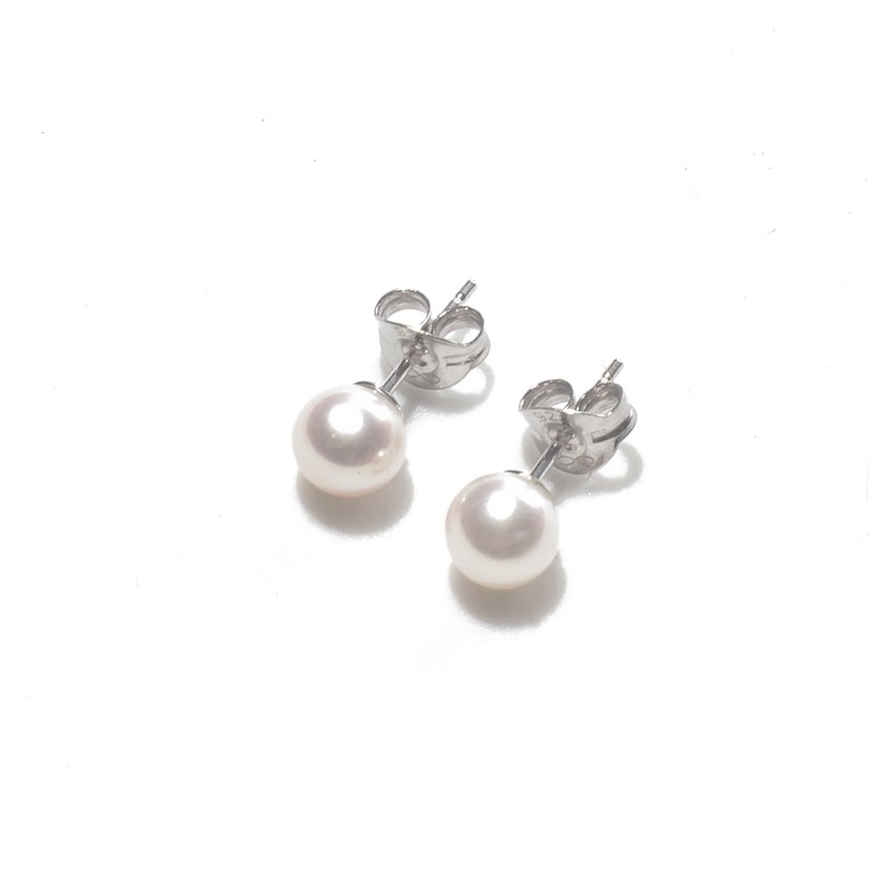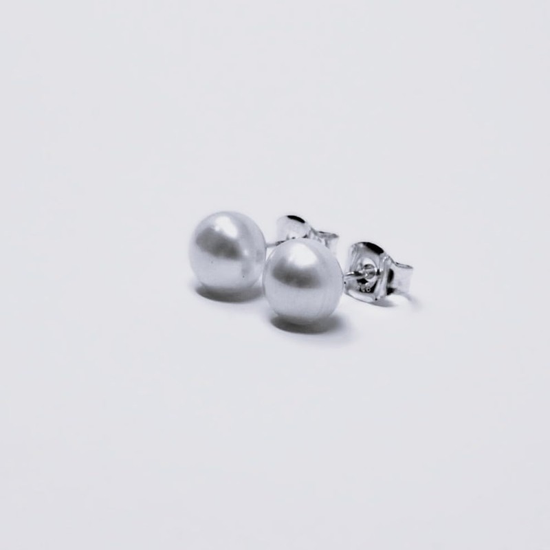 Pearl Earring, 925 Sterling Silver Stud, 7mm Button Shape Freshwater Cultured Pearl Stud Earring