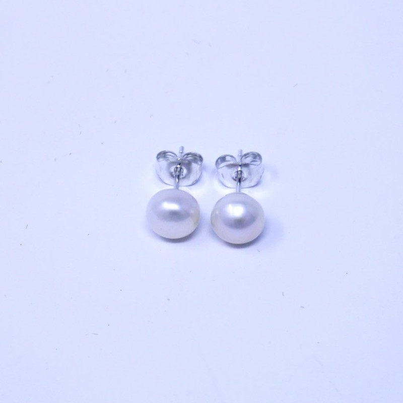 Pearl Earring, 925 Sterling Silver Stud, 7mm Button Shape Freshwater Cultured...