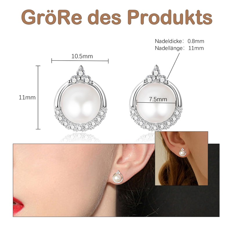 - Material: made of genuine 925 sterling silver with high-quality freshwater cultured pearls and sparkling zirconia stones. Secure stud earrings made of 925 silver for comfortable wear