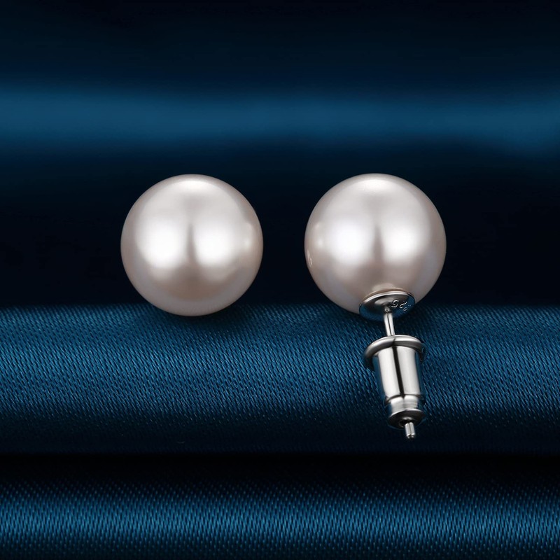 Pearl Earrings for Women Silver Pearl Earrings Freshwater Pearl Earrings Nickel Free 8mm Pearl Stud Earrings Sterling Silver Earrings Rhodium Pearl Earrings Hypoallergenic Big Pearl Studs