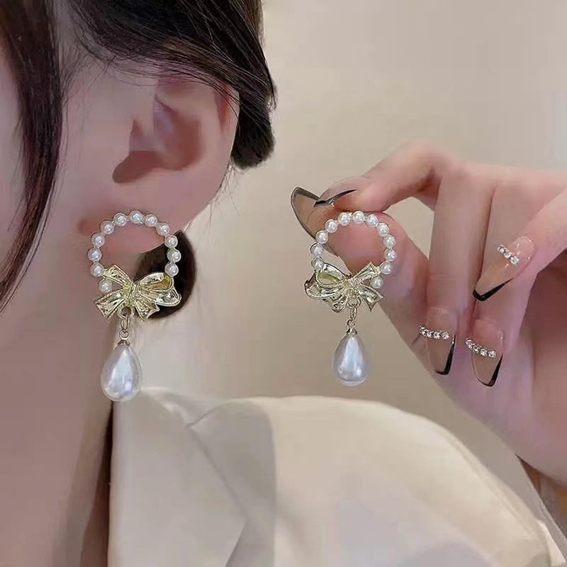 • BOW PEARL EARRINGS: Elevate your look with our Bow Pearl Earrings. Featuring a charming bow design adorned with pearls, these earrings add a touch of sweetness to any outfit, perfect for adding a feminine flair to your style.