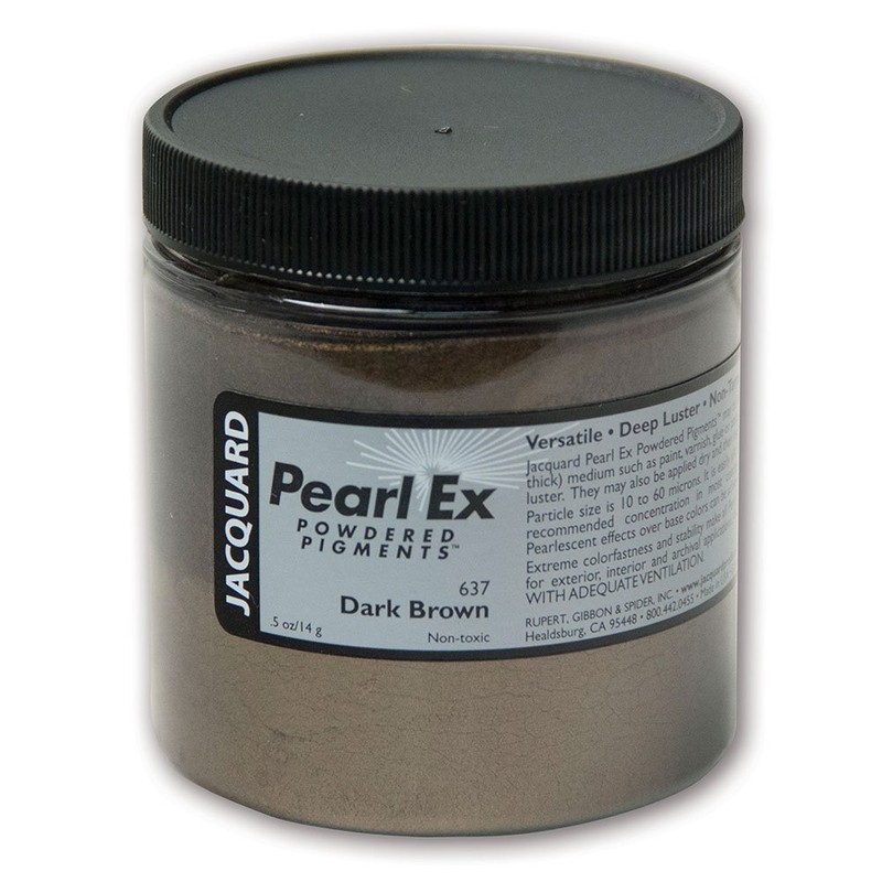This 4 ounce jar of Dark Brown Pearl-Ex Pigment by Jacquard is composed of powdered mica that can be added to any viscous medium for a metallic or pearlescent effect. Extremely versatile pearl-ex pigment is ideal for interior, fashion, fine arts and archival applications. These safe and inert pigments exhibit supreme colorfastness and will never tarnish or fade. Incorporate with other artist mediums including oils, acrylics, encaustics, wax, polymer clay or spread dry on a porous surface. Made in the USA.