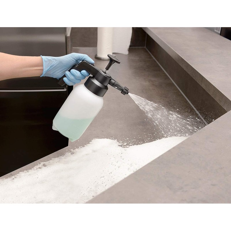 Easy to use: Thanks to the smooth-running high-performance pump, you can easily build up pressure in the bottle. With the spray button directly in the handle, you can simply spray with one hand. And thanks to the flat jet nozzle, you can apply the foam to the surface to be cleaned across a large area.