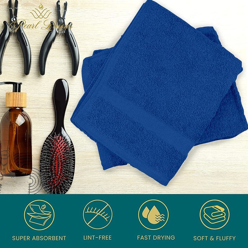 Pearl Linens 100% Cotton Premium Salon Towels Set of 24| Ultra Soft Hand Towels| Bulk Hand Towels | Spa, Gym Towel | Gym Hand Towel | Absorbent | Royal Blue Hand Towel | Hand Towel | 16x27 Inches