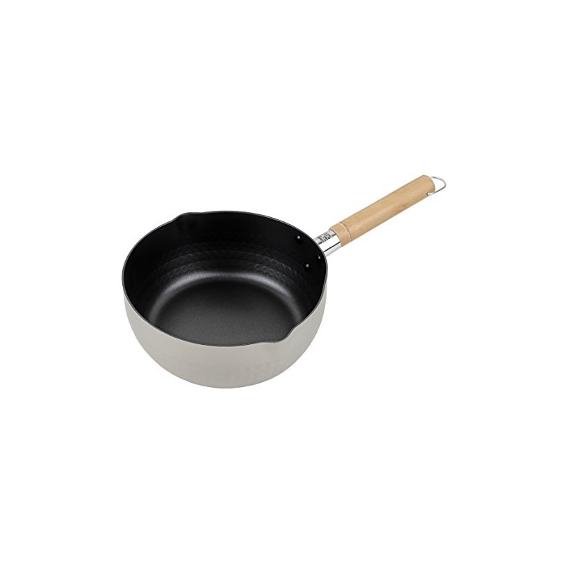 - Material: Body: Aluminum alloy (inner surface: Fluorine resin coating coating, outer surface: anodized finish), handle: natural wood