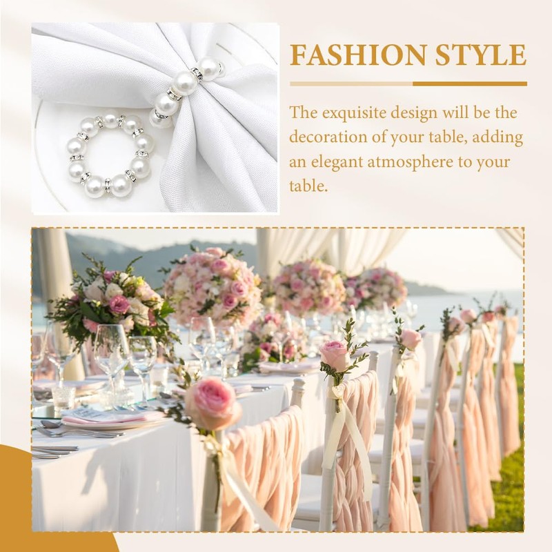 - Elegant Napkin Rings Set: This set includes 30 or 12 white napkin rings made of imitation pearl and rhinestone, adding a touch of elegance to your table setting. Perfect for daily use and special occasions like weddings, parties, and more