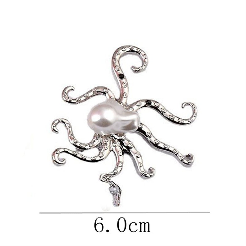Pearl Octopus Brooch Squid Brooch Marine Animal Lapel Pin Corsage Children Birthday Gift Collar Lapel Badge Scarves Shawl Clip Safety Pin Clothes Bag Ornament Silver Tone